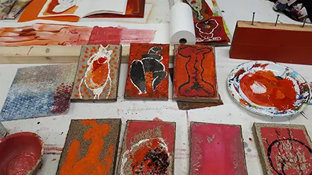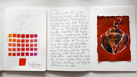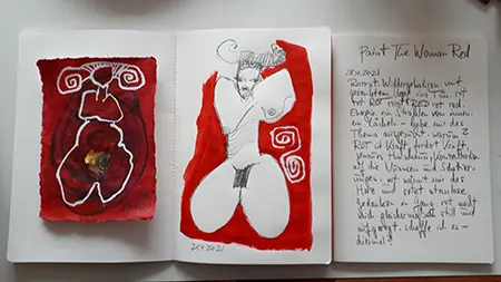 ROT als Signalfarbe, als schreierische, sich vordrängende Anmutung, als Synonym für Kraft, Wut, Zorn, Aggression, Gefahr, Feuer, Glut und Leben; daneben Bedeutungsebenen im Bereich Erotik, Körperlichkeit, Sexualität und Liebe. Was bedeutet ROT für Frauen, das Frausein – heute? Zeigt und stärkt es ihr Selbstverständnis, ihr Selbstbewusstsein – oder führt es über physische und psychische Aspekte – wie Angst, Ausgrenzung, Stigmatisierung – zurück zu Verletzbarkeit und Verletztheit? Was passiert, wenn frau sich mit ROT kleidet, schmückt, einhüllt, darstellt? Gewinnt sie, verliert sie? – Ein In-die-Tiefe-Gehen, an Strukturen kratzen, Sicht- und Standpunkt-Veränderungen.