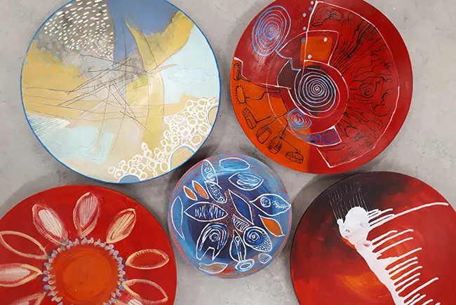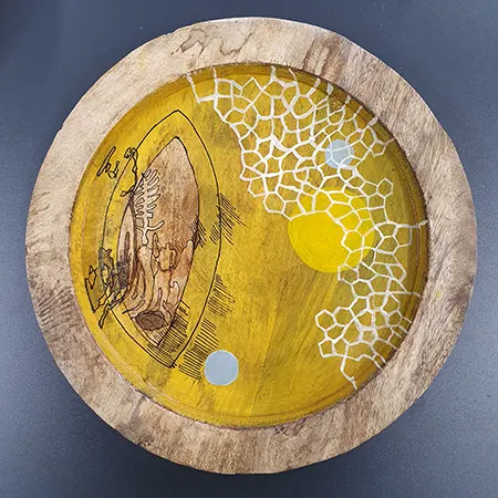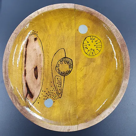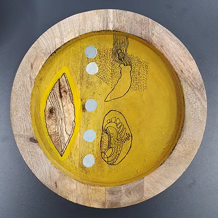 Manchmal entstehen künstlerisch gestaltete Gebrauchsgegenstände. Schalen, Schachteln, Boxen, Kerzenständer. Das Grundmaterial ist organisch, in der Natur gefunden – Holz, Stein, Bambus. Auch Keramik kommt vor. Es ist Gefundenes, auf dem Trödel oder im Laden Ergattertes, Geschenktes, Liegengebliebenes. Oft fasziniert das Material, Maserung, Struktur, auch das Alter, das Ungewöhnliche. Es regt an, dem Ding ein neues Aussehen, ein neues Leben zu geben. – Spielfeld für die Fantasie und Lust, etwas umgestaltetes Neues in der hand zu halten.