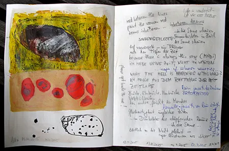 Kunst-Machen meint, den Blick neu auf Realität und Leben richten, den Standpunkt wechseln, den Blick weiten, genau hinschauen, hineindenken, hineinspüren. Undenkbares visualisieren, Unsagbarem einen visuellen Ausdruck verleihen. Unbekanntes zulassen, neues Terrain betreten, stets auf der Suche. Sich ganz dieser Suche hingeben, widmen, auch die Welt aus den Augen verlieren, um die Sicht zu schärfen. – Ein neues Werk vermag das Gemüt zu erhellen – und mit Lächeln trete ich wieder in den Alltag hinaus.
